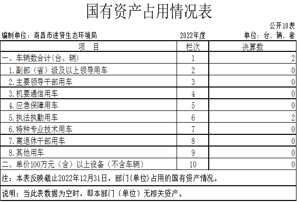 截止2022年12月31日,本单位国有资产占用情况见公开10表《国有资产占用情况表》。其中车辆中的其他车辆主要是我单位无其他用车。