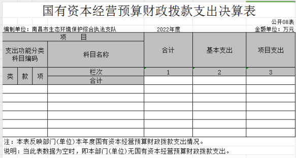 八、国有资本经营预算财政拨款支出决算表