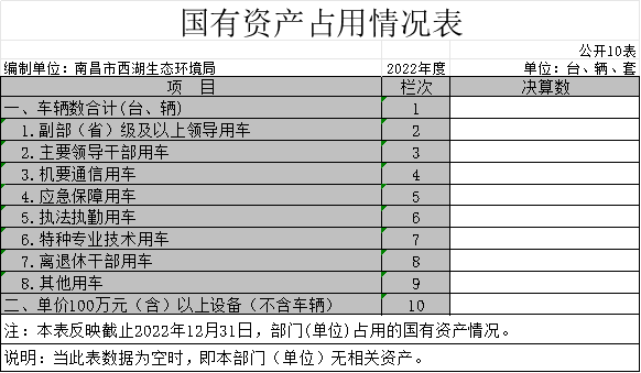 截止2022年12月31日,本单位国有资产占用情况见公开10表《国有资产占用情况表》。其中车辆中的其他车辆主要是我单位无其他用车。