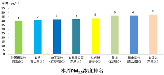 注:按PM2.5平均浓度与去年同期相比下降(上升)幅度排名。PM2.5浓度越低,空气质量越好; PM2.5与去年同期相比、与上周相比为正值,表示空气质量改善。优良率越高,空气质量越好;优良率与去年同期相比、与上周相比为负值表示空气质量改善。