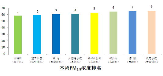 注:按PM2.5平均浓度与去年同期相比下降(上升)幅度排名。PM2.5浓度越低,空气质量越好; PM2.5与去年同期相比、与上周相比为正值,表示空气质量改善。优良率越高,空气质量越好;优良率与去年同期相比、与上周相比为负值表示空气质量改善。