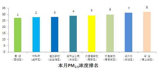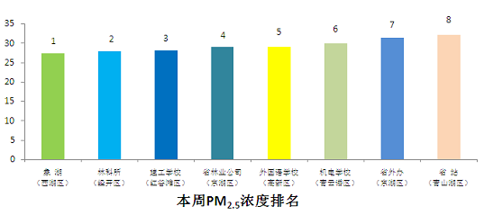 注:按PM2.5平均浓度与去年同期相比下降(上升)幅度排名。PM2.5浓度越低,空气质量越好; PM2.5与去年同期相比、与上周相比为正值,表示空气质量改善。优良率越高,空气质量越好;优良率与去年同期相比、与上周相比为负值表示空气质量改善。