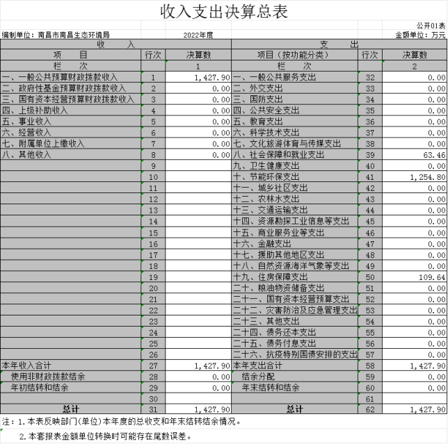 博彩公司南昌生态环境局单位2022年度决算
