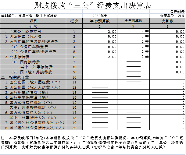 (二)公务接待费支出全年预算数为2万元,决算数为0万元,完成全年预算的0%,决算数较2021年持平,主要原因是无公务接待支出。全年国内公务接待0批,累计接待0人次,其中外事接待0批,累计接待0人次,主要为:无减少公务接待支出。