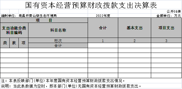 八、国有资本经营预算财政拨款支出决算表