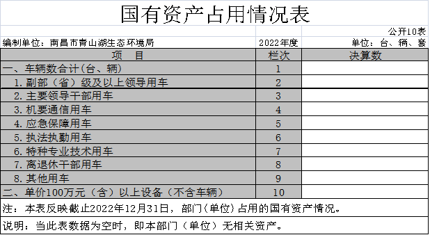 截止2022年12月31日,本单位国有资产占用情况见公开10表《国有资产占用情况表》。其中车辆中的其他用车主要是我单位无其他用车。
