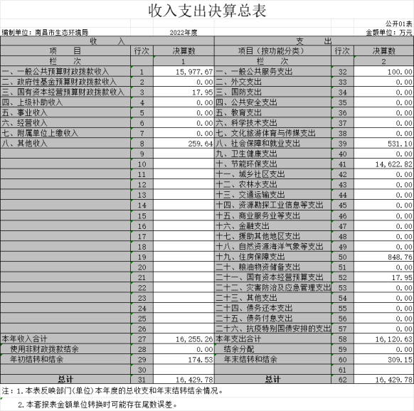 一、收入支出决算总表