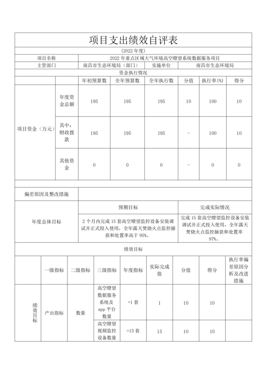 自评主要是将项目实际产出指标与年初指标值相比,完成指标值的,记该指标所赋全部分值;未完成指标值的,按照完成值与指标值的比例记分,偏差较大的需要说明偏差原因。