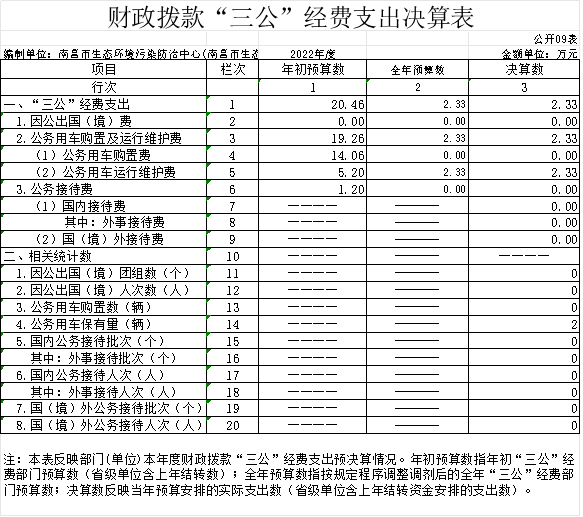 (三)公务用车购置及运行维护费支出 2.33万元,其中公务用车购置全年预算数为0万元,决算数为0万元,完成全年预算的100 %,决算数较2021年增加0万元,增长0 %,主要原因是未购置公务用车,全年购置公务用车 0 辆。公务用车运行维护费支出全年预算数为2.33万元,决算数为 2.33 万元,完成全年预算的100%,决算数较2021年减少0.13万元,下降5.3%,主要原因是厉行节约,减少开支,年末公务用车保有2辆。