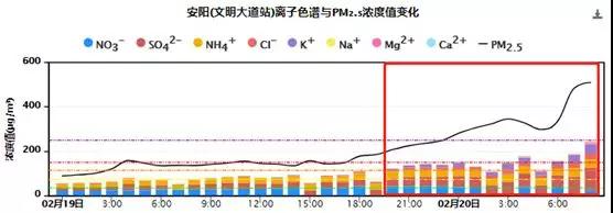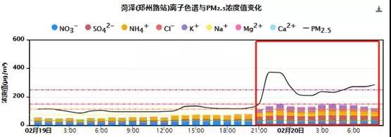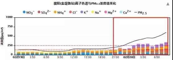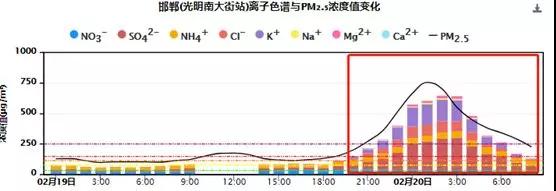 国家大气组分网观测结果显示,元宵节夜间,京津冀及周边地区受烟花爆竹燃放影响显著。邯郸、濮阳、菏泽、安阳等城市受烟花爆竹影响较大,钾离子浓度上升明显。邯郸钾离子浓度由19日18时的1.0μg/m3上升至20日2时的174.5μg/m3,升幅高达174倍;在烟花爆竹燃放峰值时段(19日20时至20日8时),濮阳、菏泽和安阳的钾离子浓度分别升高56倍、33倍和15倍(图3)。