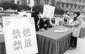 工作人员摆摊设点宣传禁燃。 记者 熊家福 摄