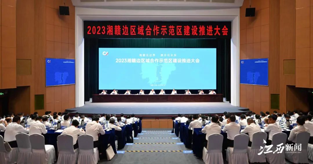 湘赣无边界、携手向未来。7月28日,2023湘赣边区域合作示范区建设推进大会在湖南浏阳市召开。江西省委书记尹弘、湖南省委书记沈晓明出席大会并讲话。江西省省长叶建春介绍有关情况,湖南省省长毛伟明主持大会。会前,两省领导参观了湘赣边区域合作示范区建设展。