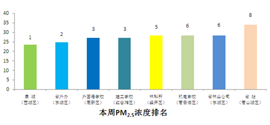 注:按PM2.5平均浓度与去年同期相比下降(上升)幅度排名。PM2.5浓度越低,空气质量越好; PM2.5与去年同期相比、与上周相比为正值,表示空气质量改善。优良率越高,空气质量越好;优良率与去年同期相比、与上周相比为负值表示空气质量改善。